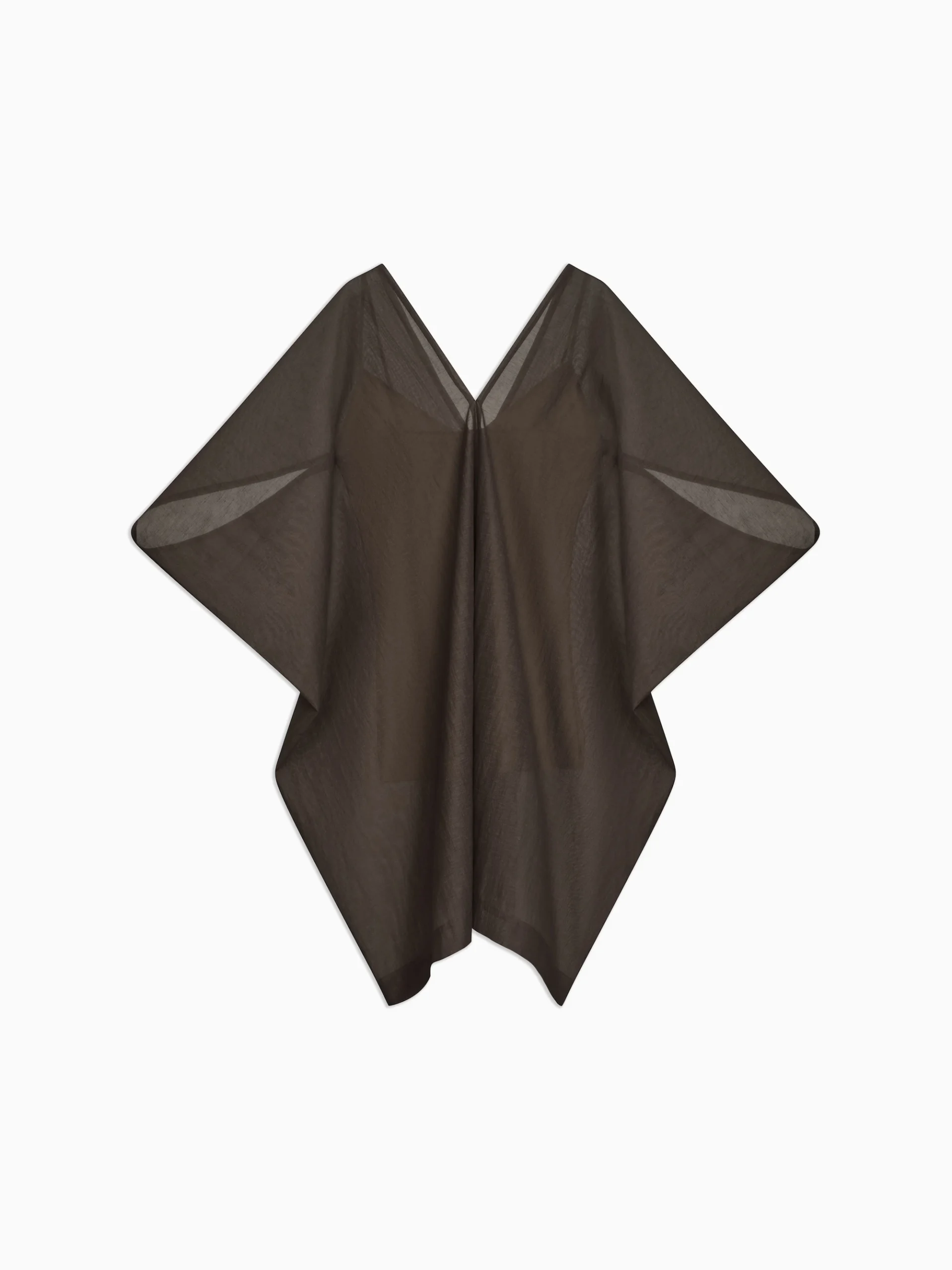 A deep V opening and horizontal sleeve cut shape a relaxed overshirt silhouette. In Brown and White, the ARON BLOUSE sits lightly over its silk slip with an effortless sense of ease.