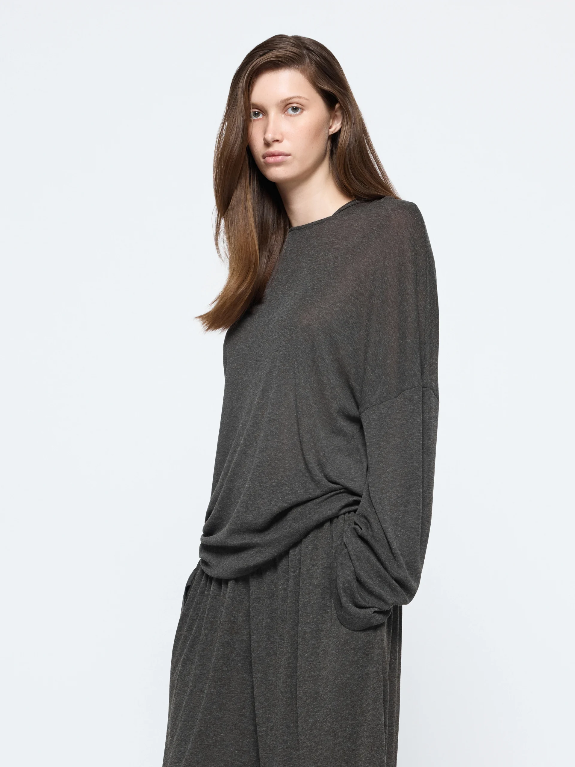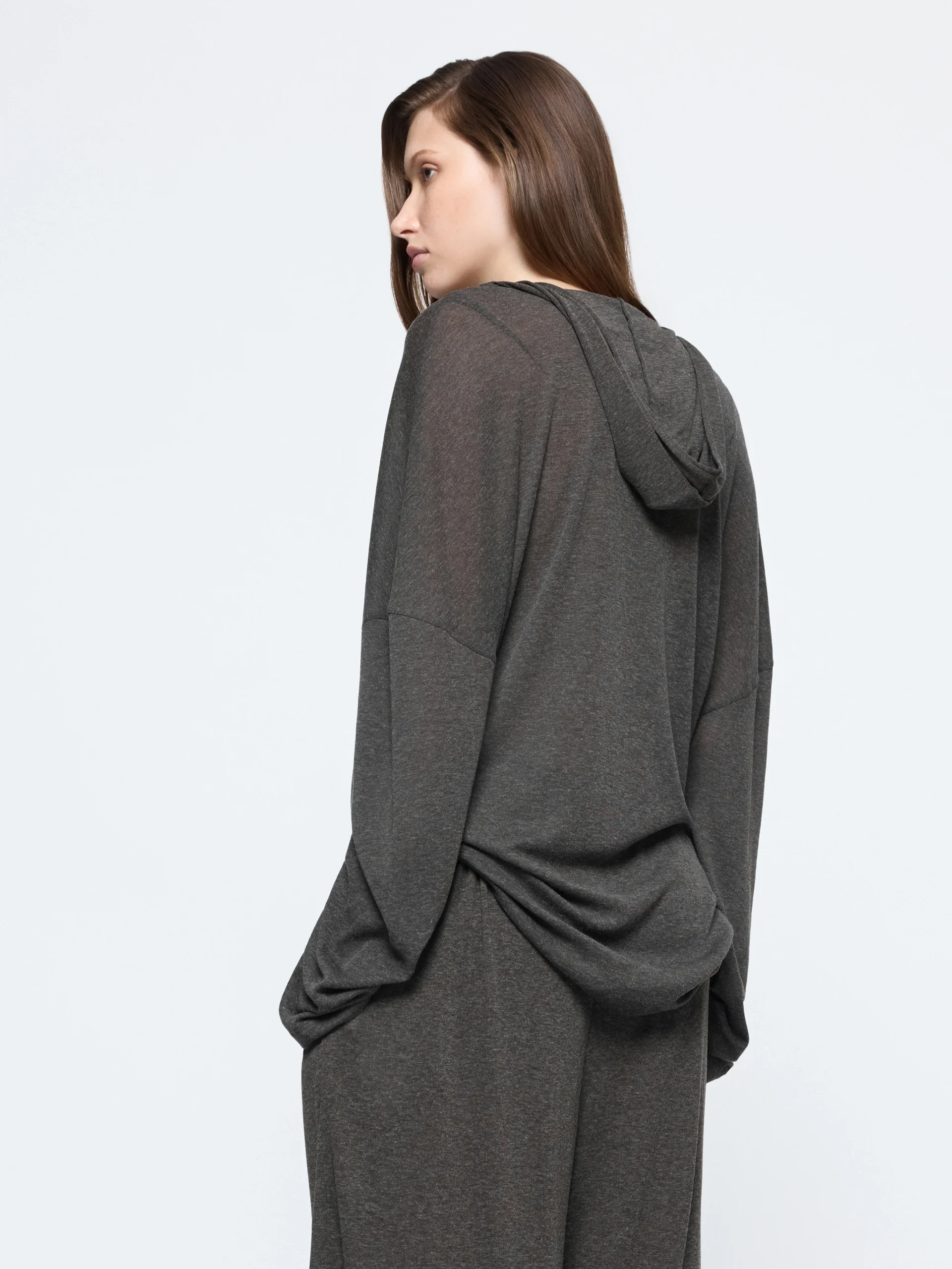 A wool-blend jersey gives the Frey blouse a soft weight that settles loosely on the frame. In ivory or brown, the hooded shape is easy for daily wear, layered or worn on its own.