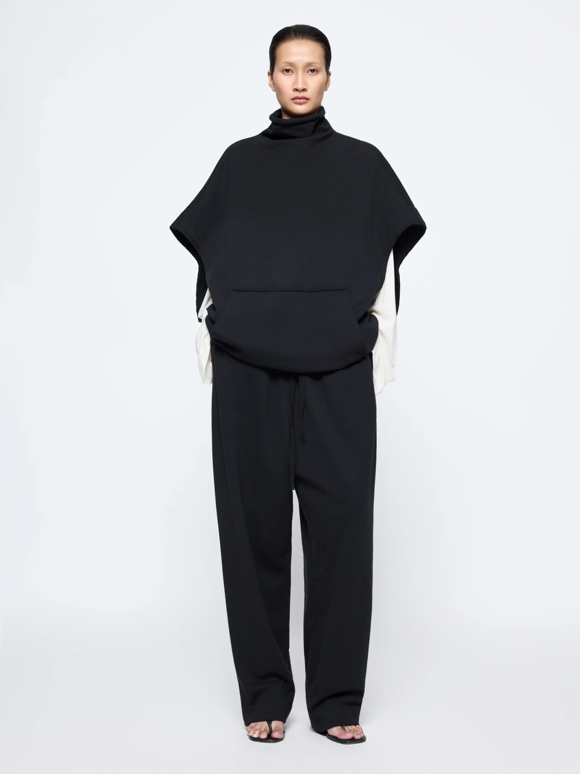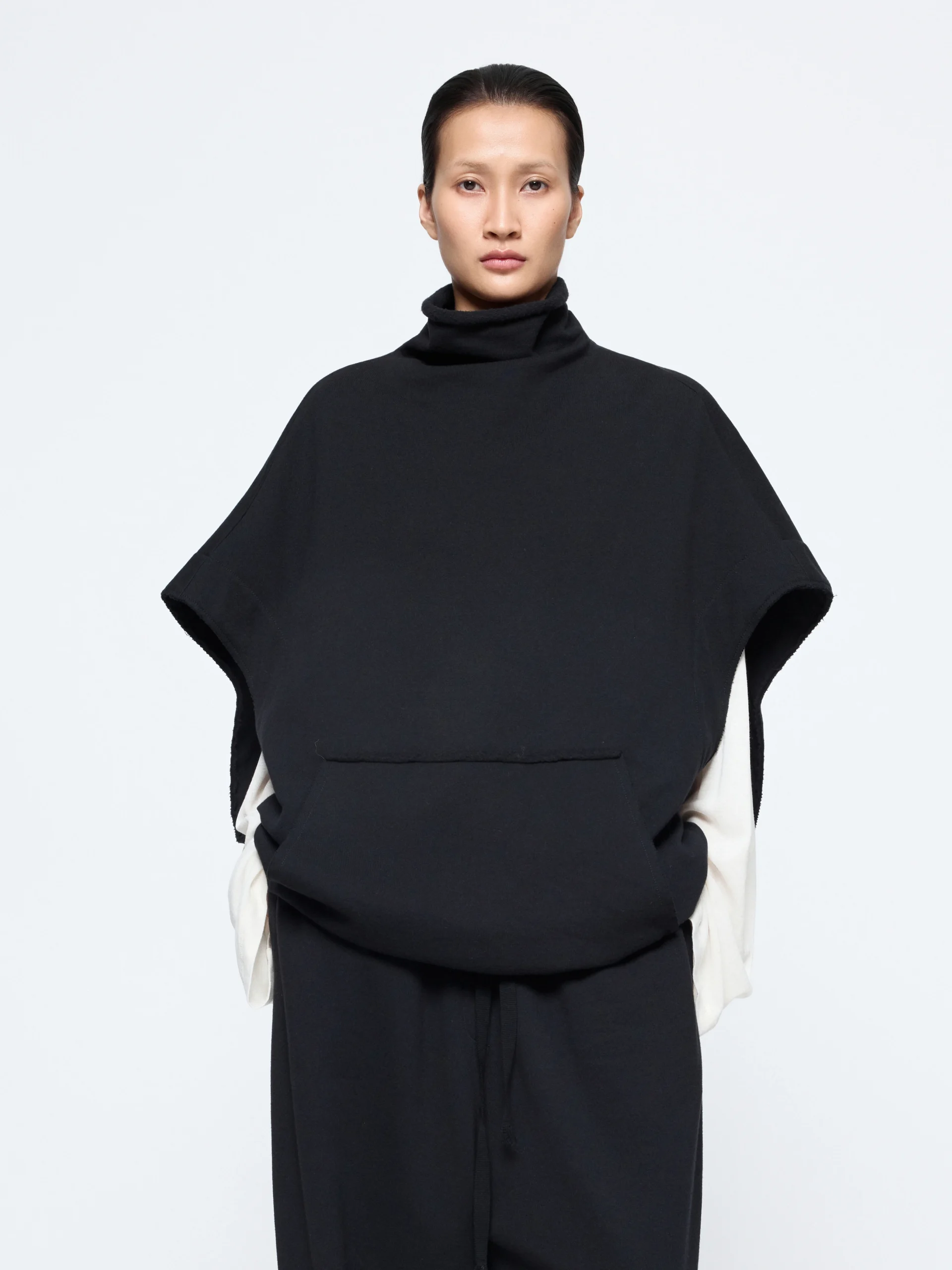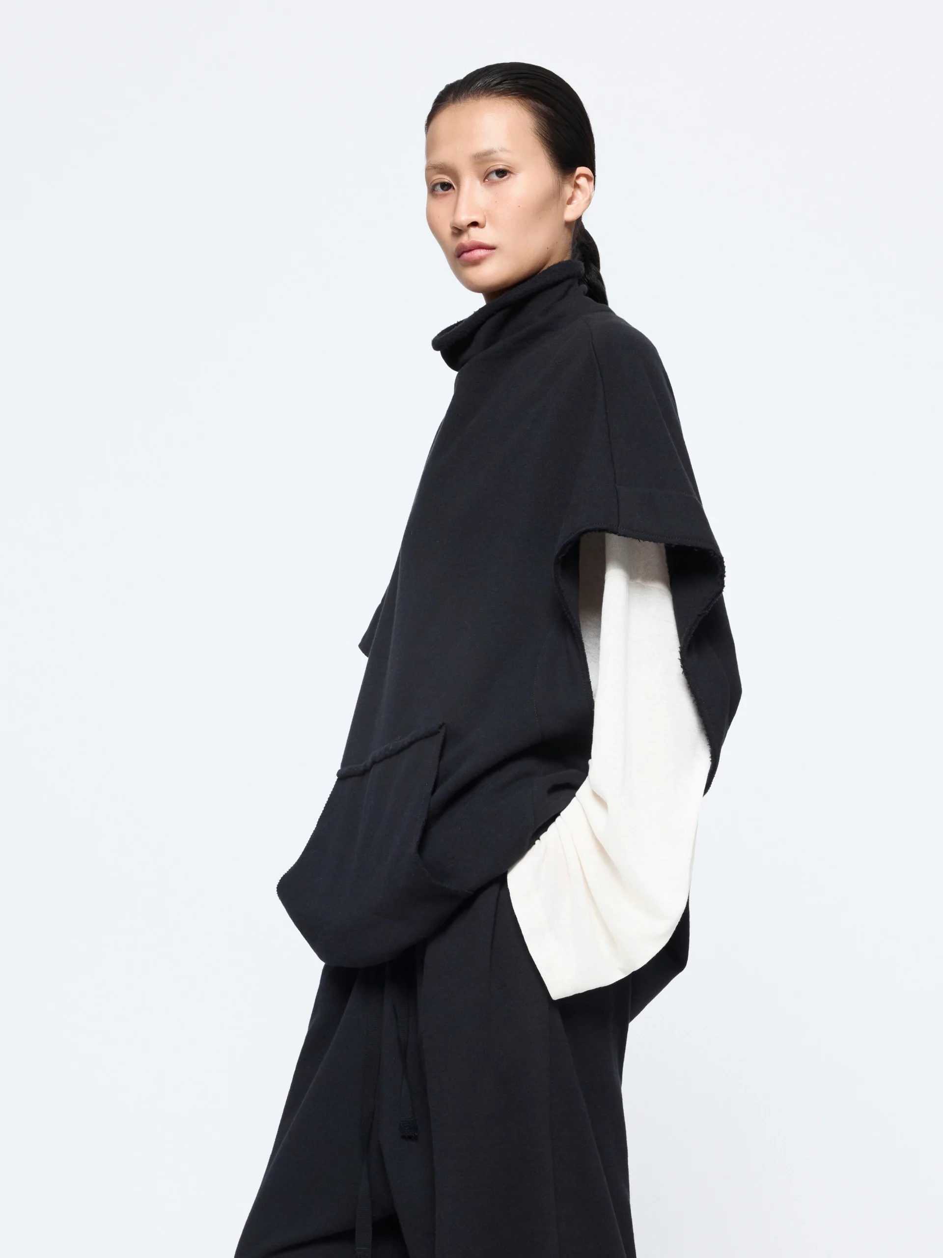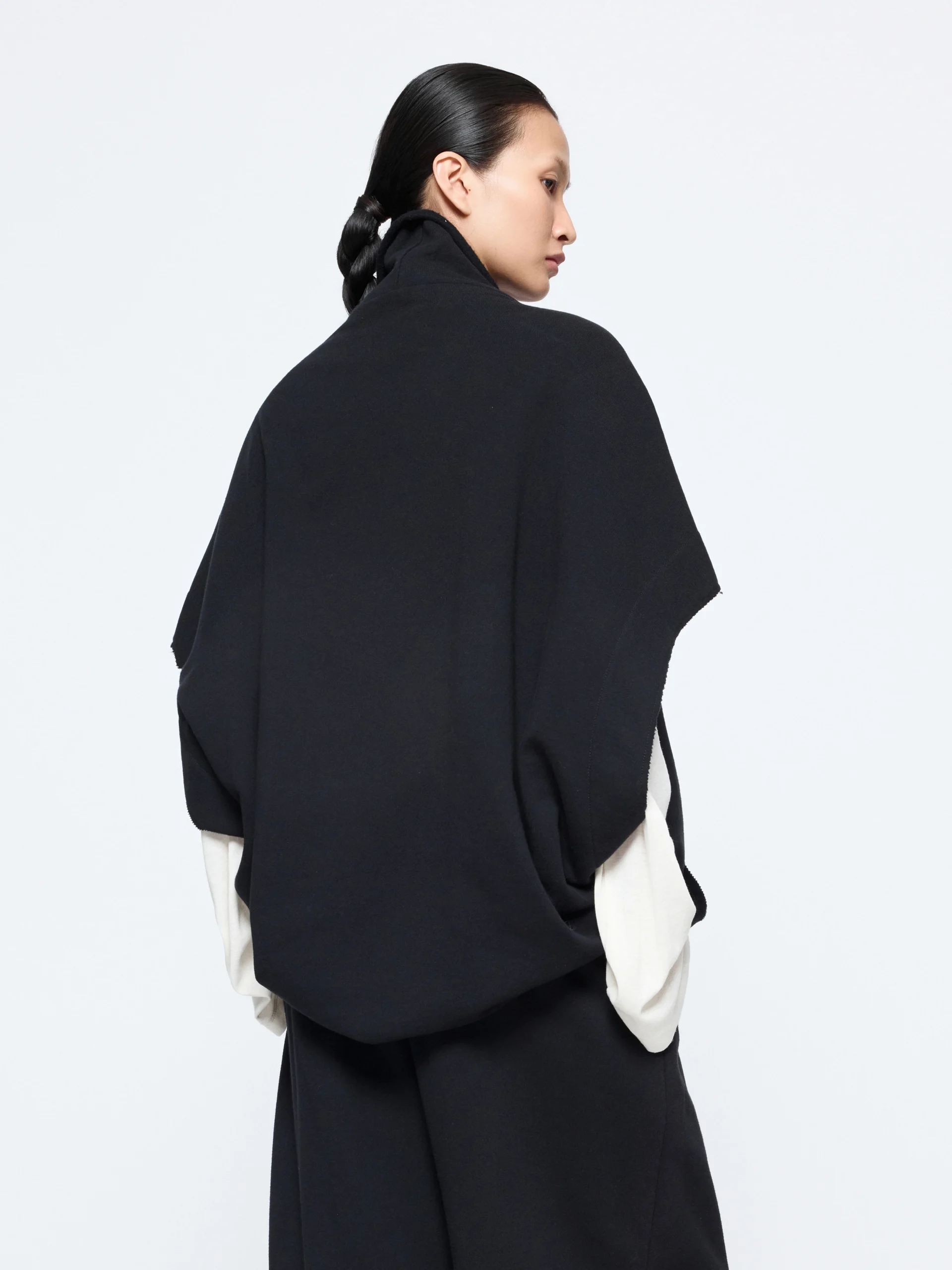 An oversized frame with frayed seams defines the Laziel blouse, detailed with a raw turtleneck and rounded armholes. In cotton-wool, it wears light on the body and works well layered over crisp shirting.