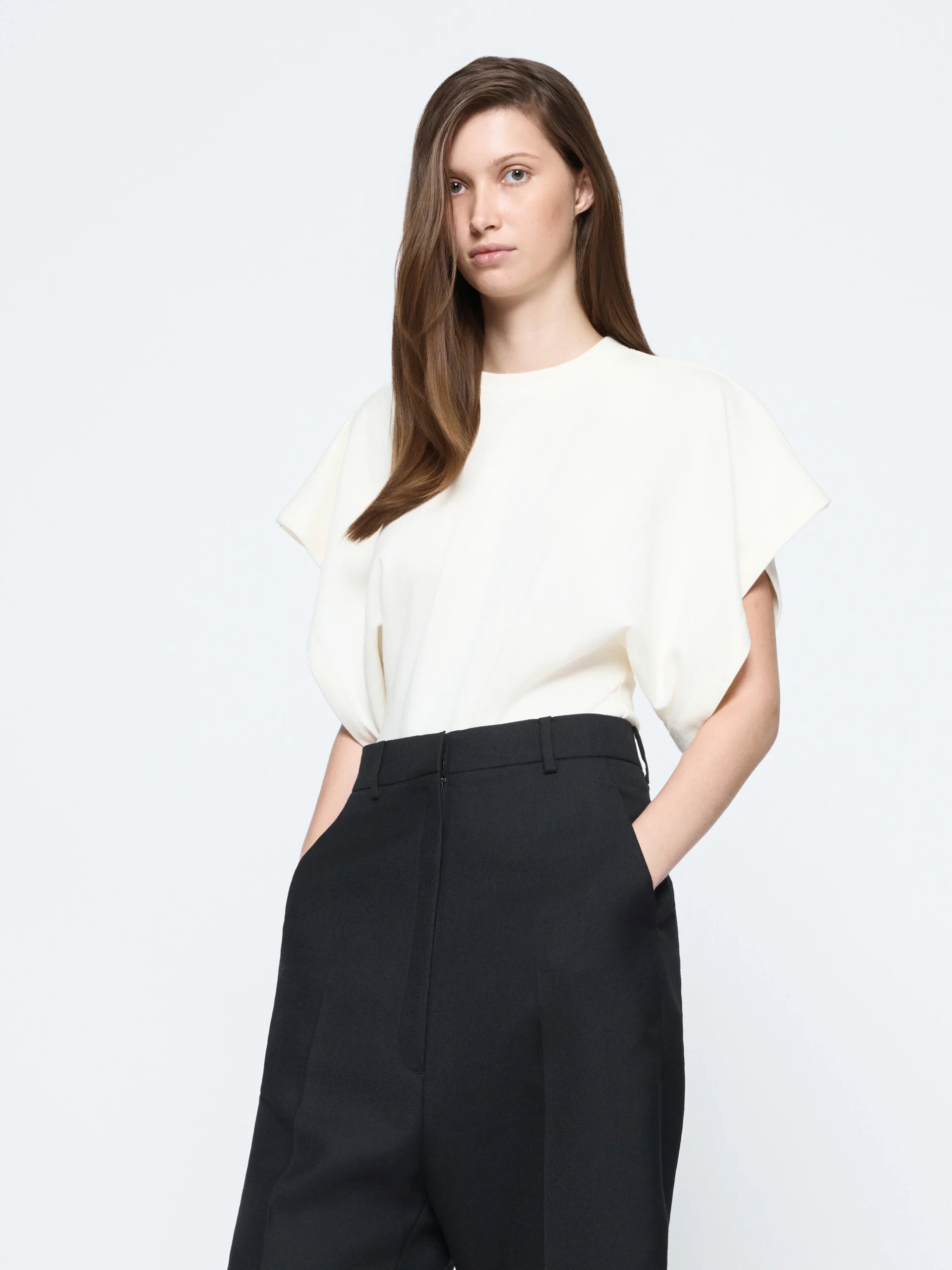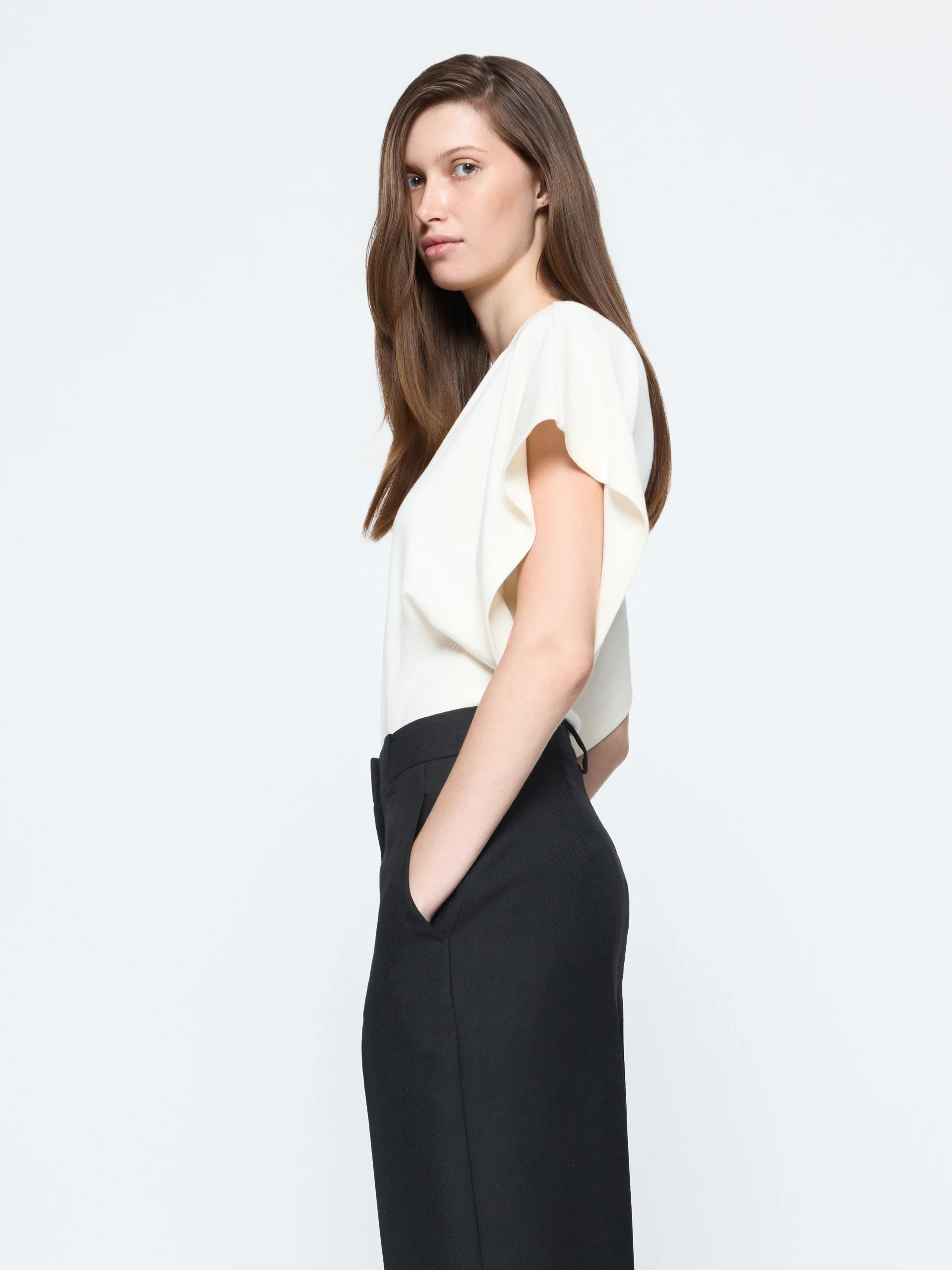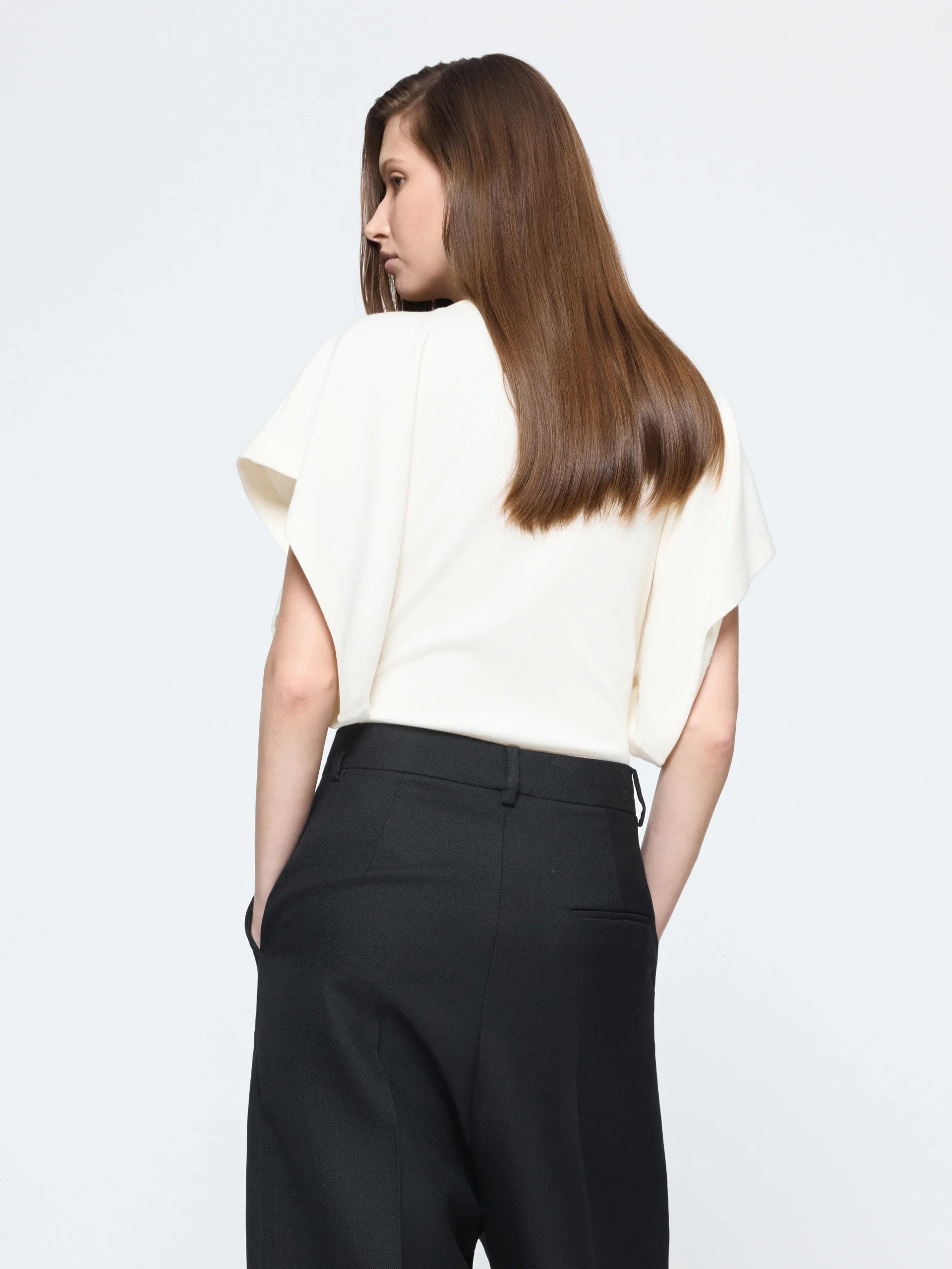 The ‘T’ bodysuit with T-shaped sleeves and a high-cut leg offers comfort and ease, styling effortlessly with skirts or trousers alike.